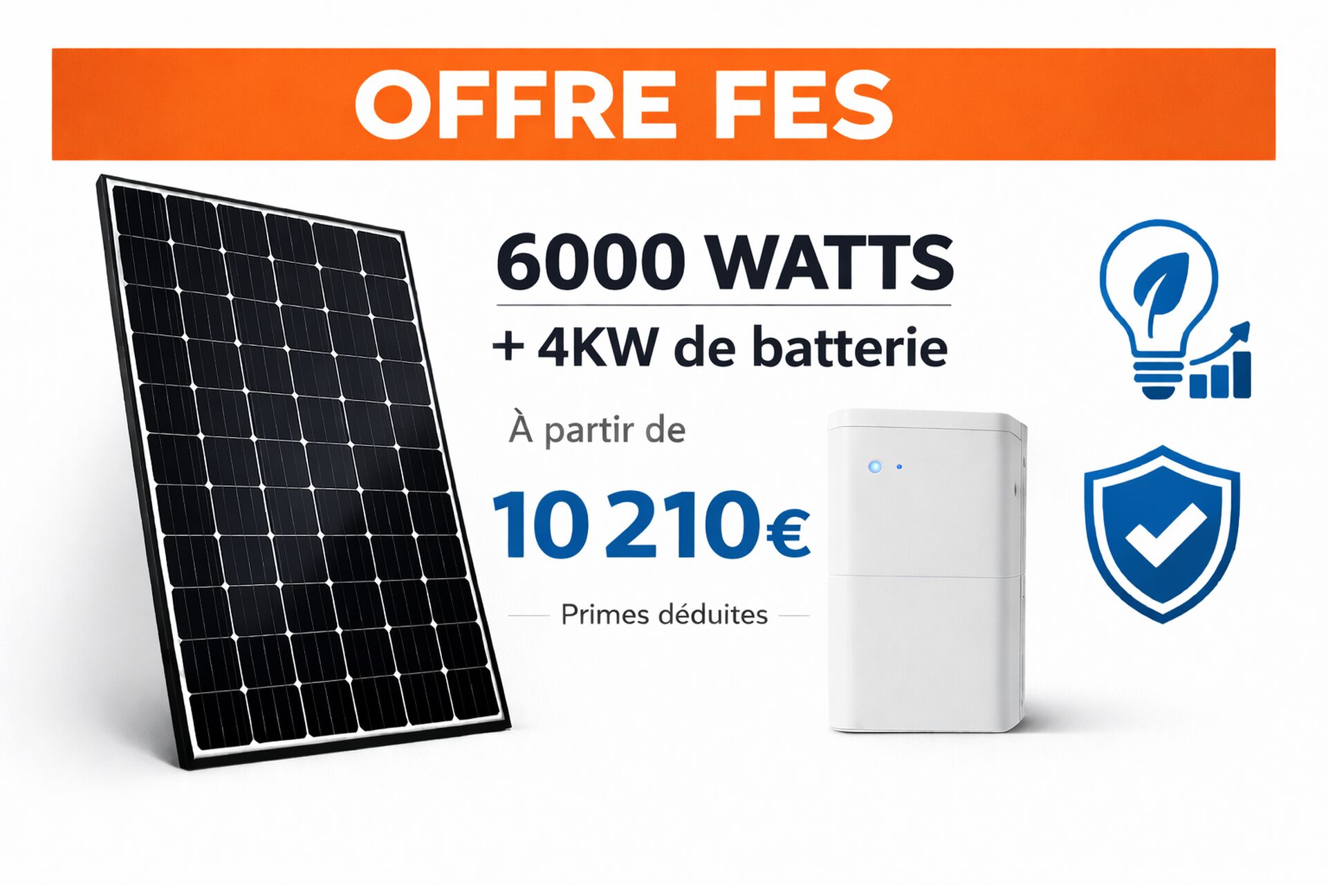 Avec l’offre 6000 W + batterie de stockage 4KW, France Énergie Solution s’adresse aux foyers qui souhaitent réduire significativement leurs factures d’électricité grâce à une installation photovoltaïque sur toiture performante.